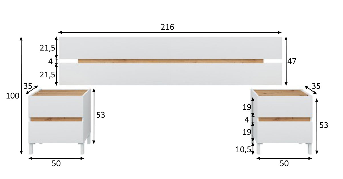 Cabecero de Cama Tempus 260x35cm. Cabezal + Dos Mesitas Transforma tu dormitorio en un oasis de estilo y funcionalidad con nuestro Elegante Cabezal para Cama y Mesitas de Noche. Diseñado para camas de 160, 150, 140 y 130 cm, este conjunto aporta un toque de sofisticación y organización a tu espacio de descanso. El cabezal se destaca por su diseño contemporáneo que añade un toque de clase a la habitación. Sus dimensiones adaptables lo convierten en la elección perfecta para camas de diferentes tamaños, asegurando una integración perfecta en tu espacio. Las dos mesitas de noche, cada una con dos cajones, ofrecen un almacenamiento práctico y accesible. Facil montaje, Medidas Cabezal: Alto: 47 cm Largo: 216 cm Prof.: 3 cm Medidas Mesitas: Alto: 53 cm Largo: 50 cm Prof.: 35 cm Componentes: T...
