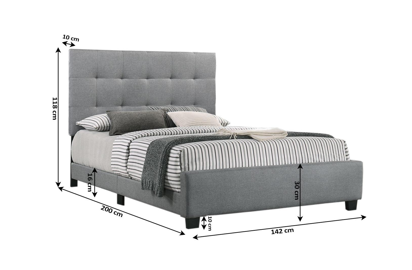 Cama de Matrimonio con Somier Emily 135x190cm Transforma tu dormitorio en un oasis de elegancia y comodidad con nuestra impresionante cama de matrimonio. Diseñada para brindarte una experiencia de descanso excepcional, esta cama combina estilo y funcionalidad en una obra maestra de diseño. El color gris suave y sofisticado de la tela de tapicero agrega un toque de serenidad y estilo a tu espacio. El cabecero de la cama presenta detalles tipo capitoné, que aportan una elegancia atemporal a la habitación. Aunque no tiene botones, el diseño capitoné sin botones conserva la estética clásica y sofisticada, realzando la belleza de la cama. El somier de madera proporciona una base sólida y duradera para tu colchón, asegurando un soporte confiable durante tus noches de descanso. Medidas: Alto: ...