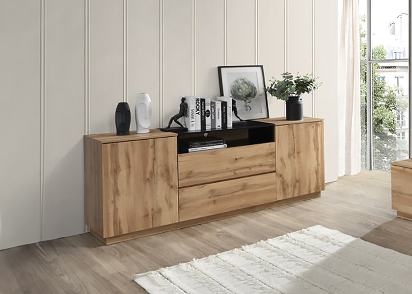 Comoda Aparador Industrial MPC 2 Puertas y 2 Cajones Aprovecha esta venta exclusiva y añade estilo y funcionalidad a tu salón con esta elegante cómoda aparador. Diseñada para maximizar el espacio de almacenamiento, cuenta con 2 puertas batientes laterales, cada una con una balda interior, ideales para organizar tus pertenencias de forma discreta. En la parte central, encontrarás 2 prácticos cajones para almacenar pequeños objetos y un hueco superior perfecto para colocar dispositivos multimedia o decoración. Con su diseño moderno y versátil, esta cómoda aparador es la compra perfecta para quienes buscan combinar estética y organización en su hogar. ¡No dejes pasar esta oportunidad y realiza tu compra ahora para darle a tu salón un toque de orden y elegancia! Facil montaje. Medidas: Alto...