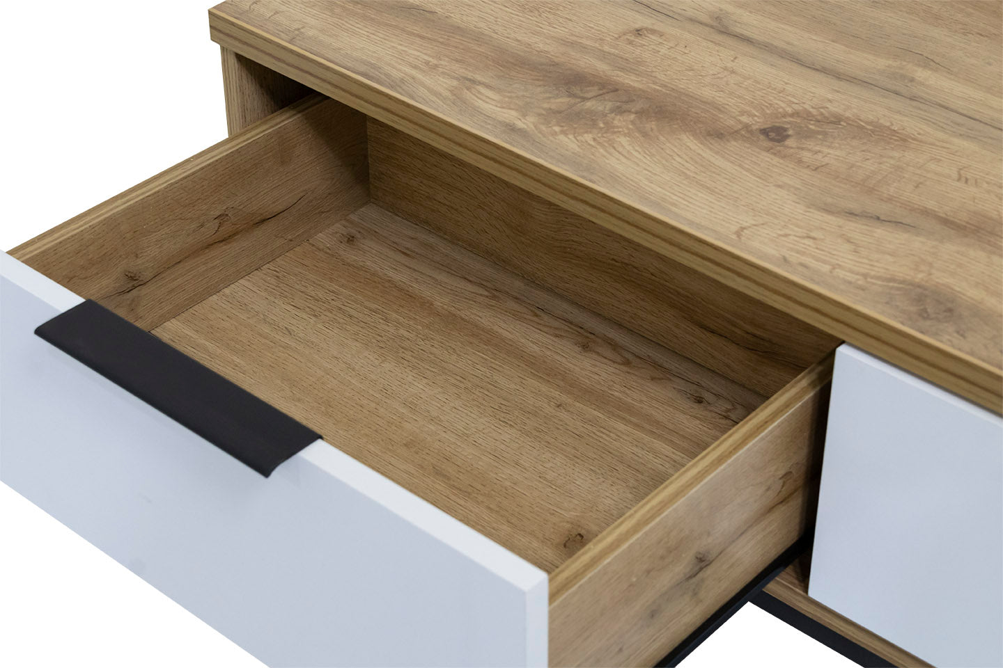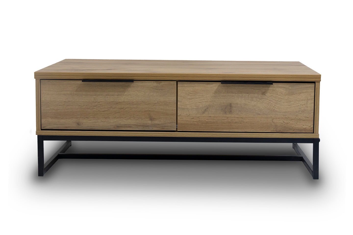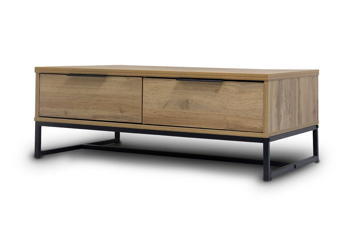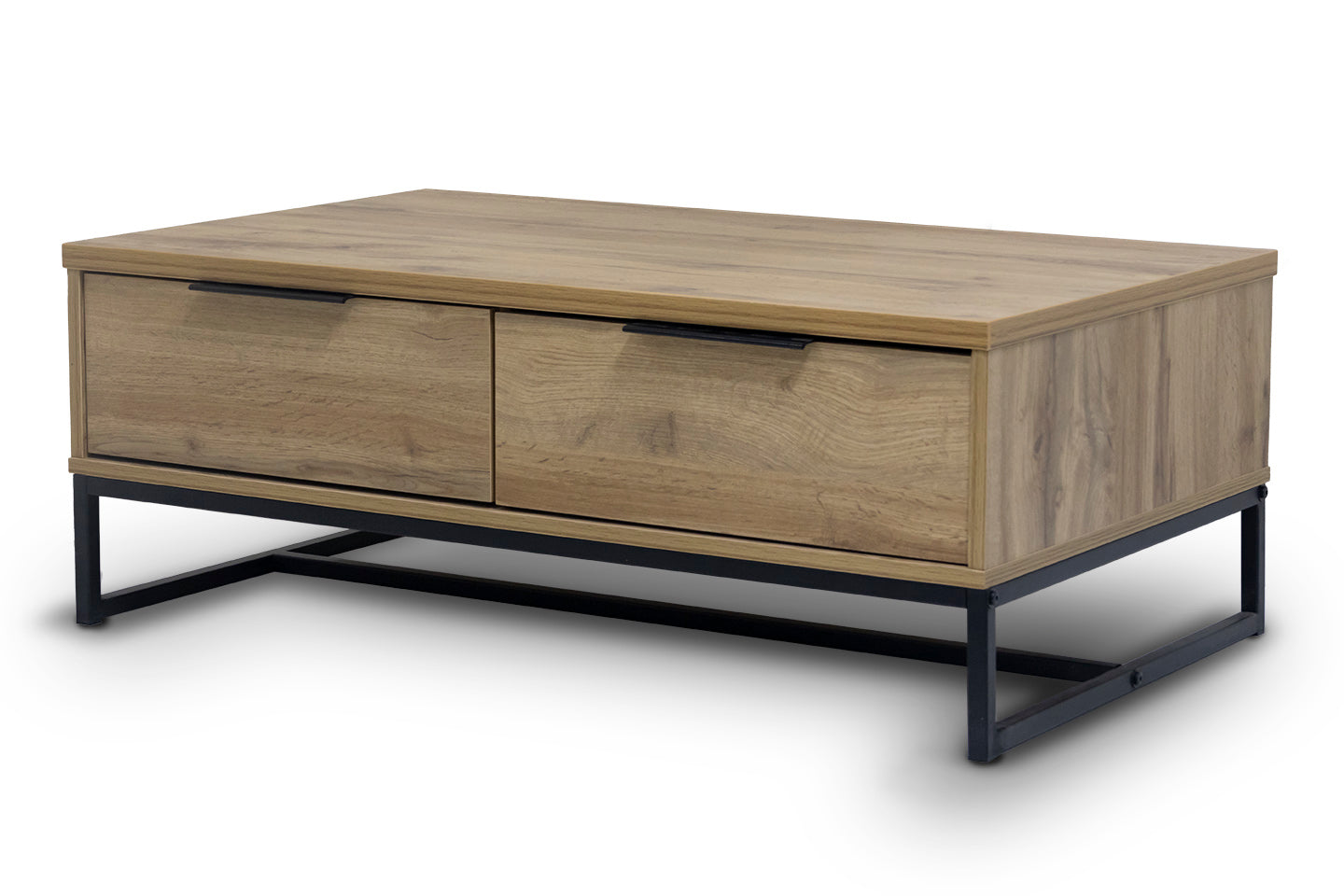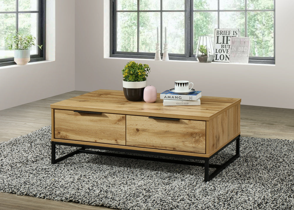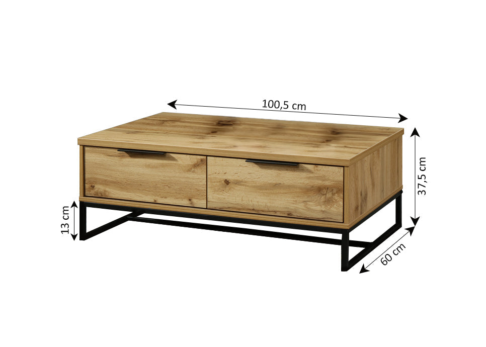Mesa de Centro Industrial CT Transforma tu sala de estar con esta elegante mesa de centro de diseño moderno y funcional. Fabricada en roble con estructura de metal negro, esta mesa ofrece un estilo industrial contemporáneo que se adapta a cualquier decoración. Sus dos amplios cajones son perfectos para almacenar libros, controles remotos u otros objetos, manteniendo tu espacio ordenado y limpio. Su tamaño ideal la convierte en el complemento perfecto para salas grandes o pequeñas. Aprovecha ahora la oportunidad y compra esta mesa de centro que combina estilo y practicidad en un solo mueble. Ideal para su venta en hogares que buscan elegancia y funcionalidad. Facil montaje. Medidas: Alto: 37,5 cm Largo: 100,5 cm Ancho: 60 cm Ref.: CT8007