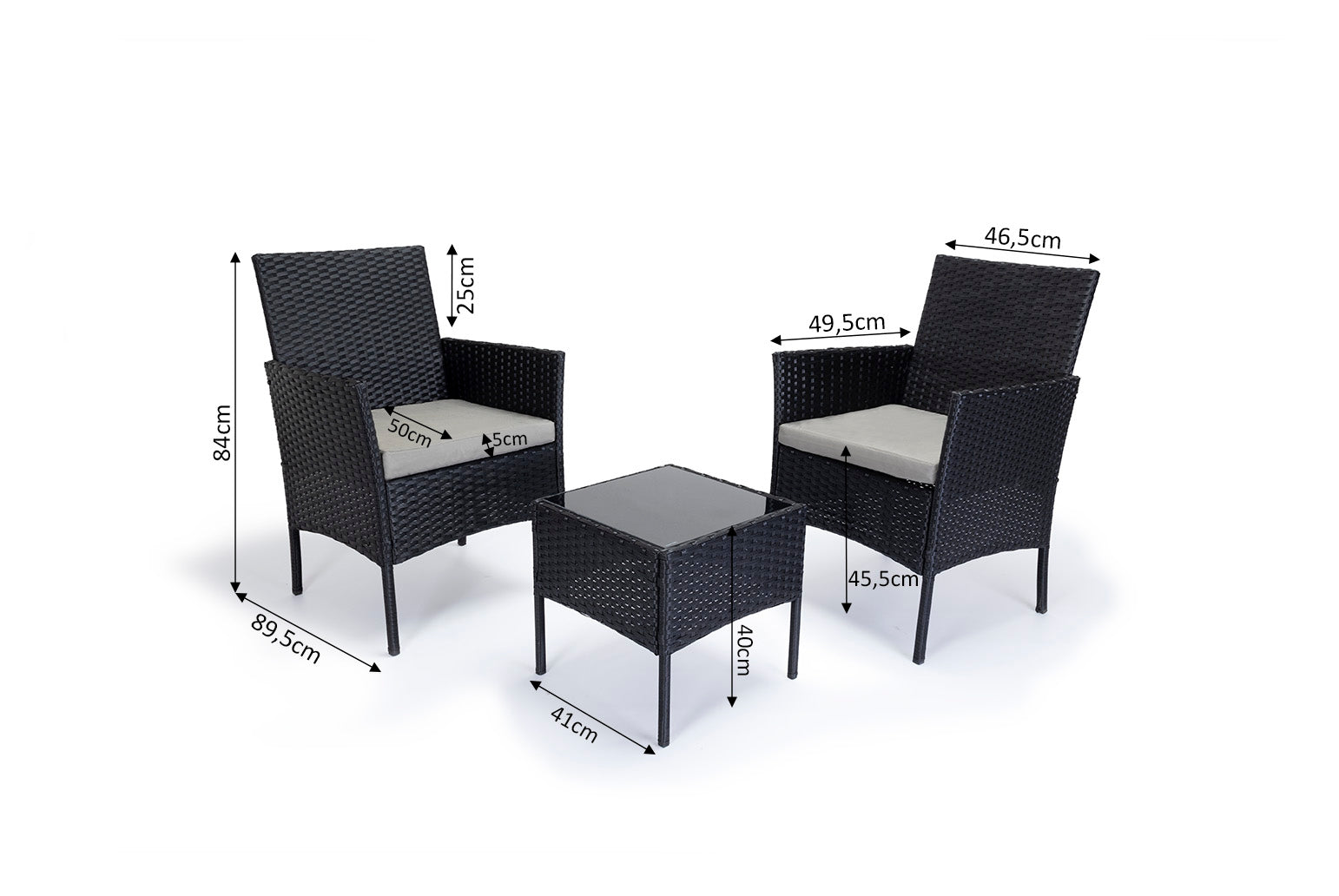 Conjunto Mesa + 2 Sillones de Ratan PE. Muebles de Jardin y Terraza Disfruta de momentos únicos al aire libre con nuestro Conjunto de Mesa y 2 Sillones de Ratán Sintetico, perfecto para transformar tu jardín o terraza en un espacio acogedor y elegante. Este set de muebles de exterior, fabricado en ratán PE de alta calidad, es resistente a las inclemencias del tiempo, garantizando durabilidad sin sacrificar el estilo. Los dos sillones ofrecen un asiento cómodo y envolvente, con un diseño moderno que se adapta a cualquier decoración exterior. La mesa, con una superficie resistente de cristal templado, es ideal para disfrutar de un café, una lectura tranquila o una charla al aire libre. Facil montaje. Medidas Sillas: Alto: 84 cm Largo: 47 cm Ancho: 89,5 cm Medidas Mesita: Alto: 40 cm Largo...