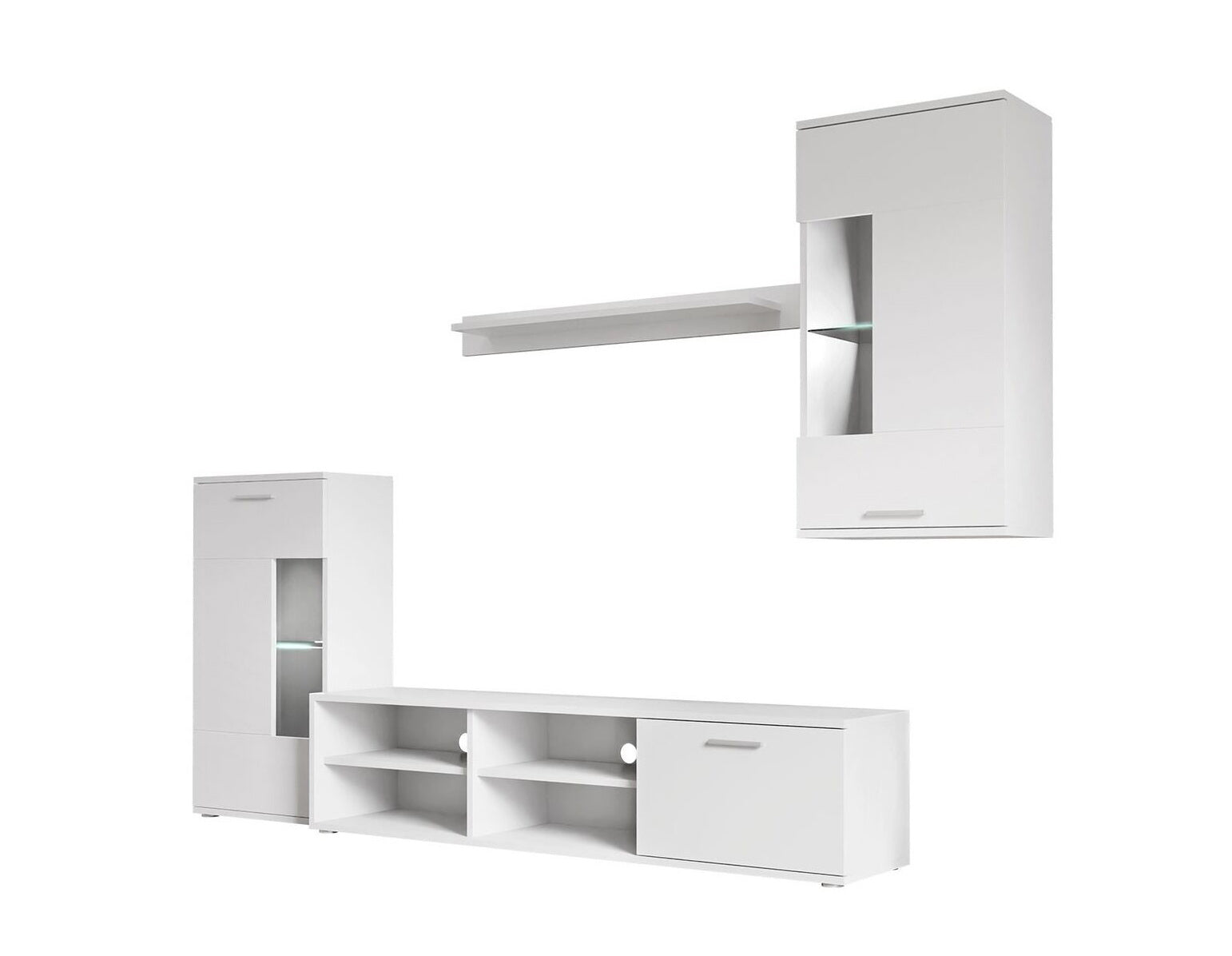 Conjunto Muebles de Salon Airam El Conjunto de Salon Airam es una excelente opcion para aquellos que buscan espacio de descanso y entretenimiento comodo y funcional en su hogar. Tiene un diseño moderno y sencillo que se adapta a cualquier estilo de decoracion, mientras que los cuatro modulos ofrecen una solucion completa para el almacenamiento de tus objetos personales. El conjunto incluye un mueble de television, una vitrina alta, una estante y un modulo bajo, que ofrecen amplio espacio para guardar accesorios y otros objetos. Fabricado en melamina de alta calidad, este conjunto de salon es facil de montar. Ademas, el conjunto es muy facil de limpiar y mantener, para que puedas disfrutar de su belleza y confort durante mucho tiempo. - El servicio de montaje incluye el montaje del muebl...