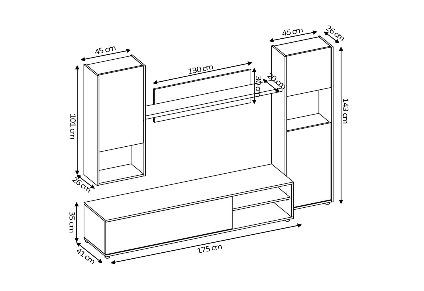 Conjunto Muebles de Salon Yuri Transforma tu sala de estar en un espacio elegante y funcional con nuestro conjunto de muebles de salón compuesto por cuatro módulos imprescindibles: mueble TV, estante, mueble colgante y mueble lateral. Con un diseño moderno y acabado de alta calidad, este conjunto es la opción perfecta para dar vida a tu espacio de entretenimiento. El mueble TV ofrece un amplio espacio de almacenamiento para tus dispositivos electrónicos y accesorios multimedia, mientras que el estante proporciona un lugar ideal para exhibir tus objetos decorativos favoritos. El mueble colgante ofrece almacenamiento adicional sin ocupar espacio en el suelo, mientras que el mueble lateral completa el conjunto con un toque de elegancia y funcionalidad. Fabricados con materiales duraderos y...