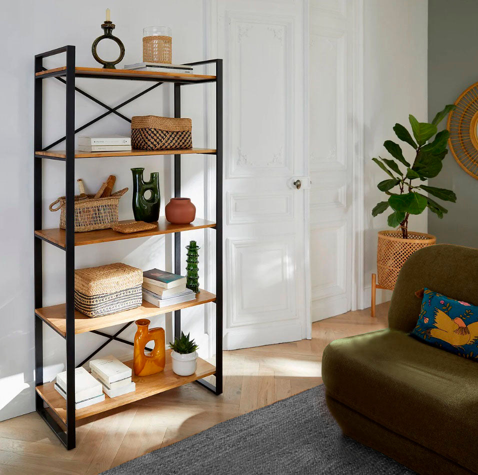 Estantería Metalica Industrial Miño, 5 Baldas Organiza tu hogar con estilo con nuestra estantería de metal y madera Miño. ¡Es la solución perfecta para añadir funcionalidad y elegancia a cualquier espacio! Esta estantería combina la resistencia del metal con la calidez y la belleza natural de la madera, creando un mueble versátil y atemporal. Esta estantería ofrece una solución de almacenamiento perfecta para libros, adornos, plantas y mucho más, permitiéndote mantener tu hogar ordenado y organizado con facilidad. Ya sea en el salón, la oficina o el dormitorio, esta estantería se adapta perfectamente a cualquier ambiente, añadiendo un toque de sofisticación y estilo industrial moderno a la decoración de tu hogar. Fabricada con materiales de alta calidad y acabados impecables, esta estan...