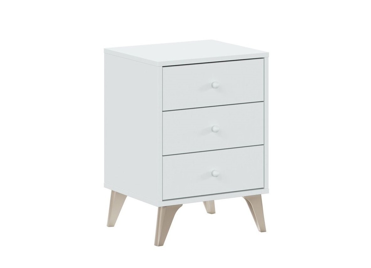 Mesita de Noche Sweet 3 Cajones 56x40 cm Perfecta Mesita de Noche con 3 Cajones de estilo nordico. Con sus lineas rectas y finas, esta Mesita de Noche dara un toque de elegancia a tu habitacion, por sus detalles decorativos como los tiradores en forma de bola y sus patas inclinadas ligeramente. La Mesita de Noche 3 Cajones 56x40 cm es una mesita auxiliar, que gracias a su diseño y a su versatilidad, podras colocar en cualquier habitacion de tu casa, desde matrimonio hasta infantil. Este mueble incluye tres cajones no extraibles con guias correderas metalicas. Tiradores de bola en ABS pintado del mismo color que el resto del mueble y 4 patas ligeramente inclinadas hacia fuera en ABS marron, imitando a la madera natural. Es una mesita resistente al peso, una vez que soporta un peso total ...