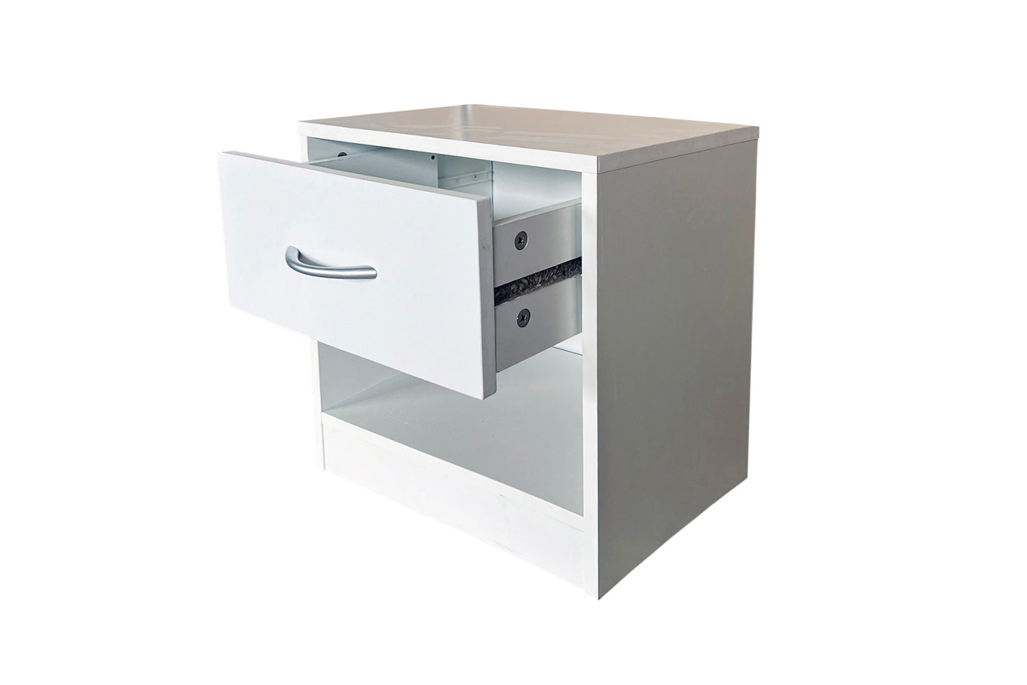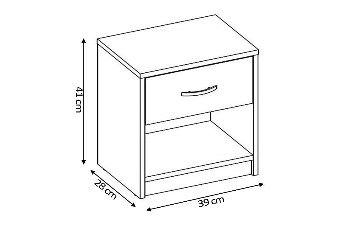 Mesita de Noche Pep 1 Cajon Completa la armonía de tu dormitorio con nuestra encantadora mesita de noche. Equipada con un cajón espacioso y una balda inferior, esta pieza ofrece almacenamiento conveniente para tus objetos personales y libros favoritos. Su diseño elegante y funcional se adapta fácilmente a cualquier estilo de decoración, mientras que su construcción robusta garantiza durabilidad y resistencia a lo largo del tiempo. Aprovecha la oportunidad para mejorar tu espacio con nuestra mesita de noche. Facil montaje. Medidas: Alto: 41 cm Largo: 39 cm Ancho: 28 cm Ref.: PEP