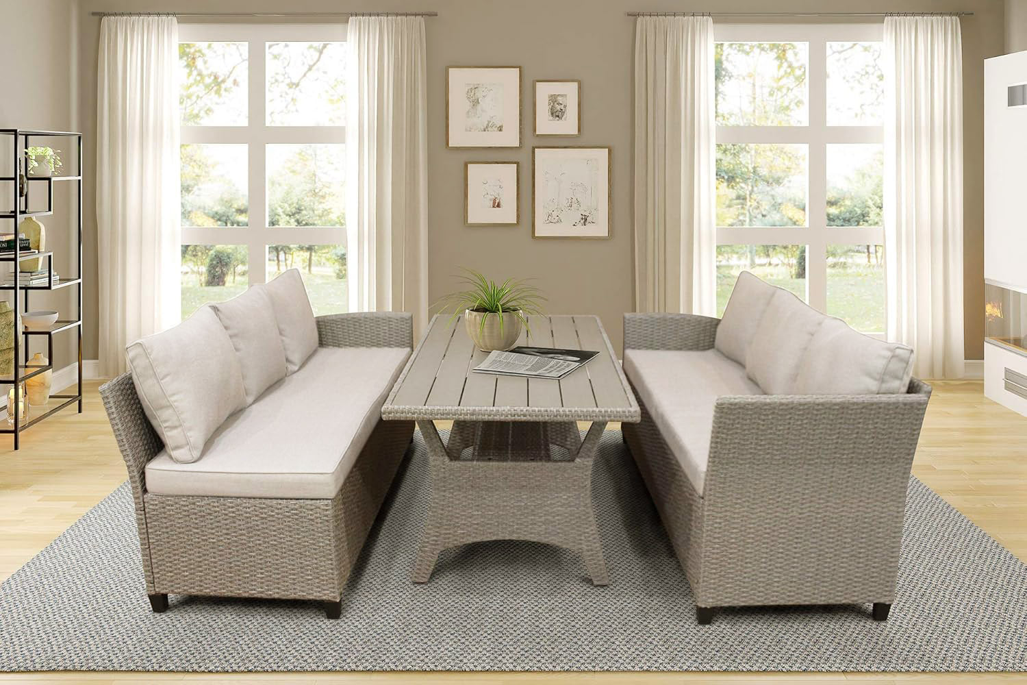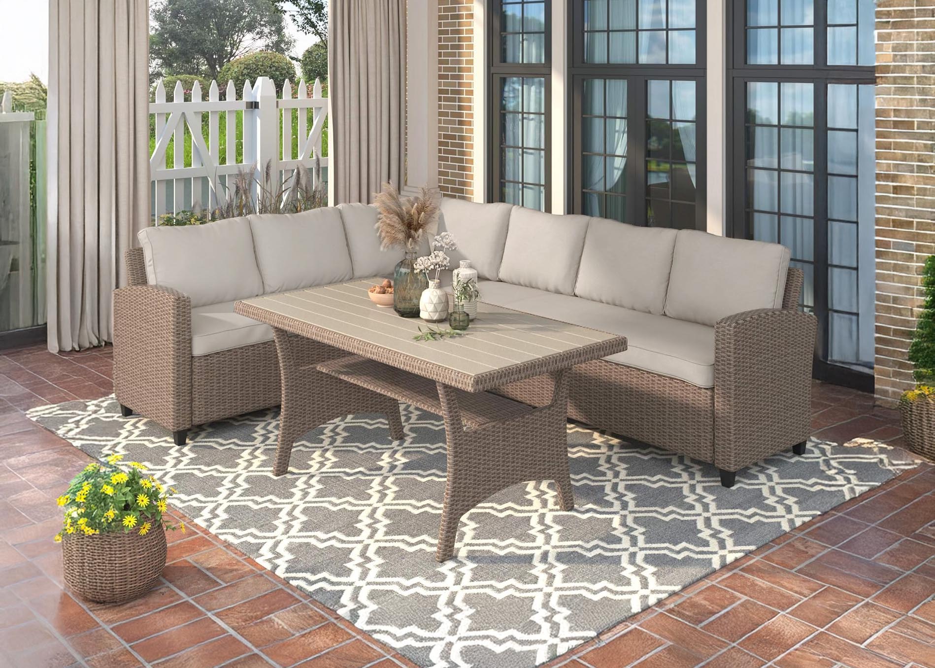 Sofa Rinconera + Mesa de Ratan PE Marron. Muebles de Jardin y Terraza