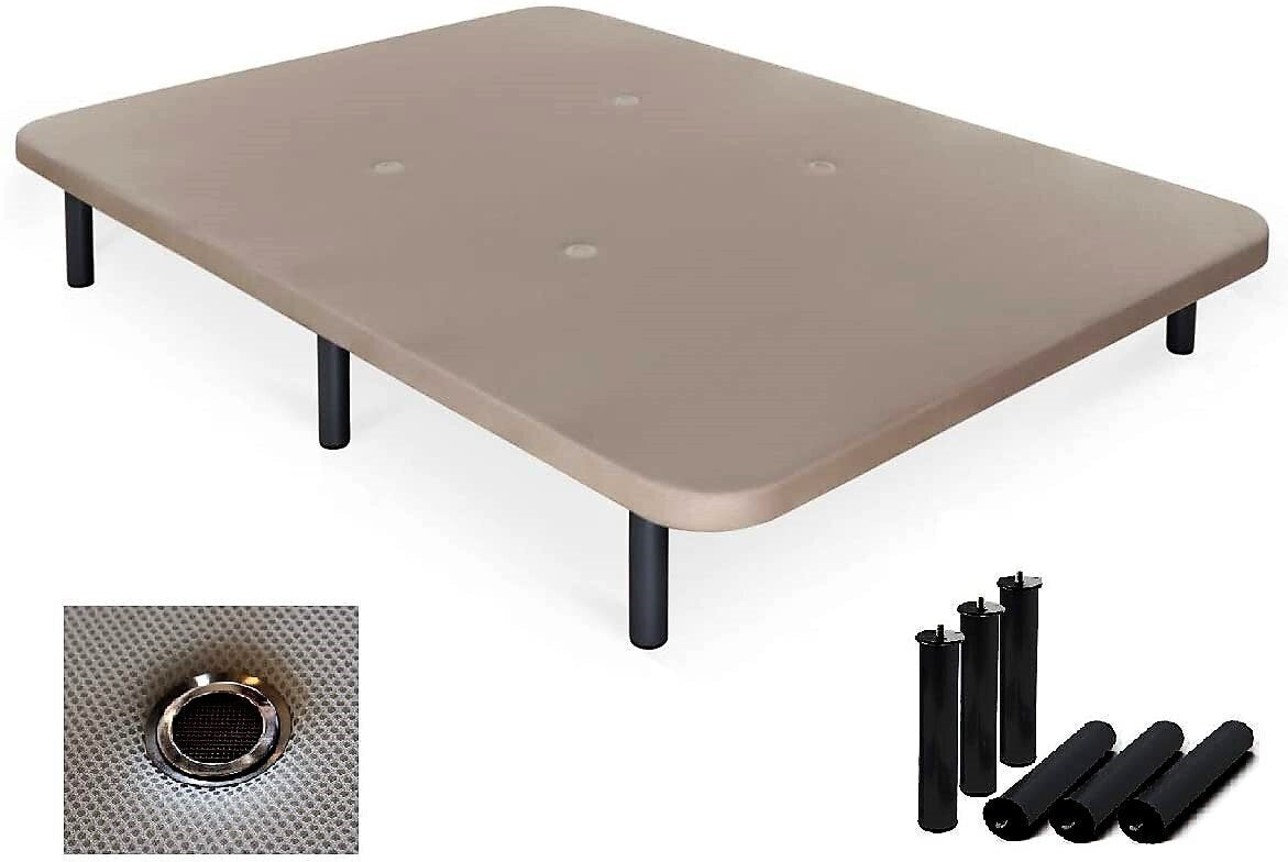 Somier Base tapizada de 90, 105, 135 y 150 x 190cm Somier Base Tapizada con tejido transpirable. Incorpora el exclusivo sistema Air Fresh 3D System, diseñado para facilitar una completo flujo de ventilación del somier y colchón. Comparado a otras bases tapizadas tradicionales, el tablero de kraft corrugado de alta resistencia es menos pesado y más fácil de mover que otras bases tapizadas de madera aglomerada. Incorpora un robusto sistema de tres barras transversales para un mayor refuerzo. La base tapizada se entrega montada, sólo es necesario roscar las patas sin necesidad de utilizar herramientas de montaje. Ref.: BASE-TAPIZADA
